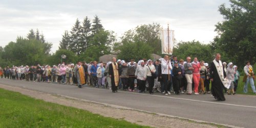 Зупинка на нічліг відбулася у с. Ішків (Козівський район), де їх гостинно вітали вірні села та адміністратор парафії о. Євген Зарудний.