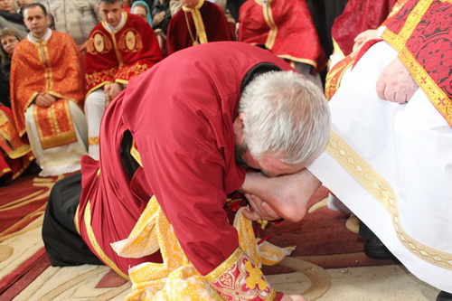 “Сам і нині, Владико, пройшовши посеред недостойних слуг Твоїх, що йдуть за твоїм прикладом, обмий всяку скверну і нечистоту душ наших, щоб ми, обмивши порох, який приліпився до нас від прогрішень наших і обтерши рушником любові один одного, могли вподобатися Тобі в усі дні життя нашого і знайти благодать перед Тобою”, – молився наприкінці владика.