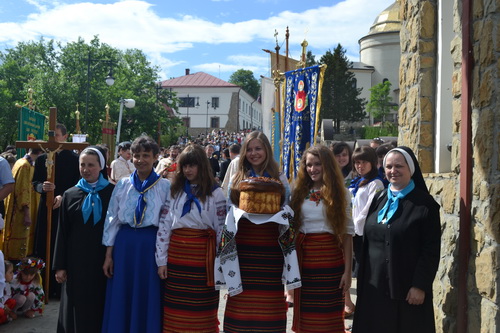 Урочисту процесію до Гошівської чудотворної ікони за участю дітей всіх католицьких шкіл та їхніх батьків – членів Асоціації Християнських Батьків України – очолив ігумен Гошівського монастиря о. Дам’ян Кастран, ЧСВВ.