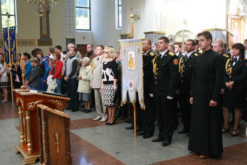 Паломники взяли участь у Божественній літургії у Соборі Зарваницької Матері Божої, яку служив о.д-р Михайло Пастух. Священик привітав рятувальників та членів їхніх родини від імені владики Василія Семенюка, подякував рятувальникам за нелегку працю та побажав, щоб «Господь, зберігаючи їхні життя, допомагав їм рятувати життя інших людей».