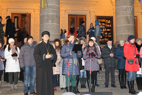 5 грудня духівник студентського товариства “Обнова” о. Іван Січкарик та члени молодіжних християнських організацій провели молитву за мир і справедливість в Україні та духовні розважання для усіх учасників Майдану.