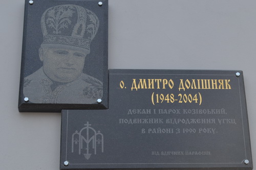 Після Панахиди архиєпископ з усіма присутніми вийшли на освячення меморіальної дошки на дзвіниці на честь о. Дмитра. Її спорудили з ініціативи о. пароха Михайла Забанджали за підтримки парафіян (жертводавець п. Дмитро Будзан).