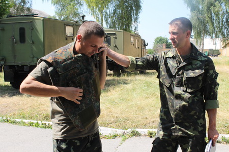 Бронежилети прийняв підполковник І. В. Ларін. Військові одразу приміряли їх та подякували Церкві за допомогу.