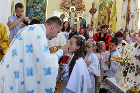 Свято розпочалося з урочистого походу до храму вулицею села. Діток вели їхні хресні батьки. Далі відбулася Свята Літургія. Священик дав духовну настанову, кажучи: «Господь наш Ісус Христос дав нам таку поживу й напиток у Пресвятій Тайні Євхаристії, які не тільки утримують наші душі в надприродному житті ласки, але також запевнюють нам осягнення остаточної мети, тобто злуки з Богом і участь в Його Божому житті й безмежному щасті».