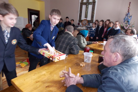 5 лютого учні 7 класів Тернопільської школи №6 представили у благодійному фонді «Карітас» різдвяний вертеп для потребуючих людей. Відтак роздали присутнім консервацію (варення, огірки, вишні), які принесли з власних домівок, пригощали всіх печивом.