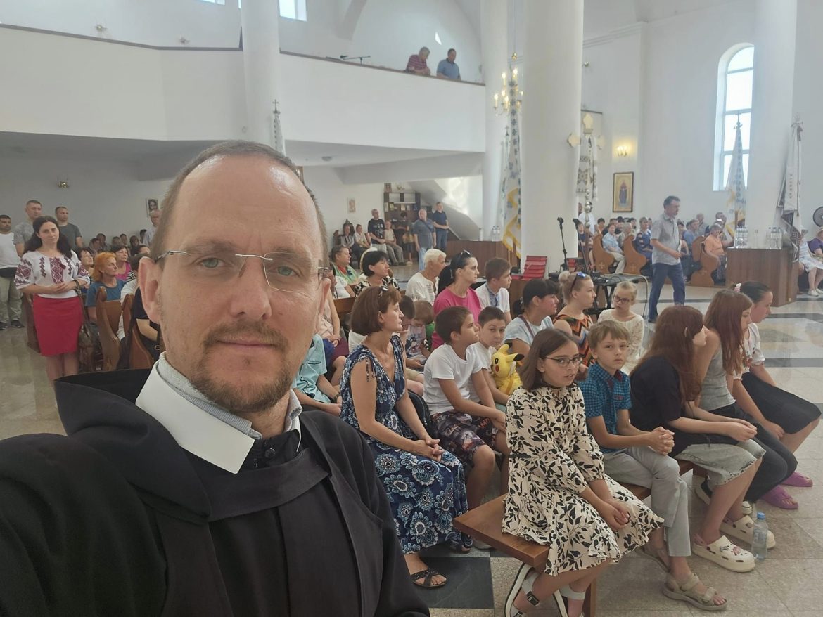 Я також брав інструмент, коли люди стояли в черзі за гуманітаркою. Ми разом співали, вчилися українською мовою «Отче наш», «Богородице Діво». Одного разу було понад 2000 осіб. Уся черга повторювала за мною українською мовою ці молитви. Я говорив про сповідь, про те, чому у храмі стоїть сповідальниця. Пояснював, чому потрібно сповідатися. Запрошував прийти на Святу Літургію, розповідав про вервицю, яку відразу разом молилися. Багатьом це запало в душу, і вони згодом почали більше цікавитися духовним життям і приходити до храму.