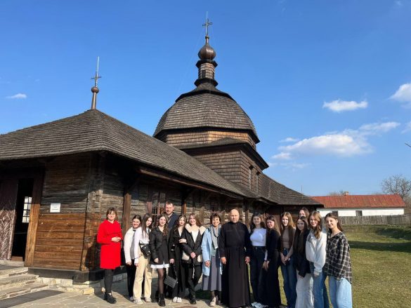 Наступною зупинкою стала Успенська церква в місті Глиняне. Цей храм є найдавнішою збереженою дерев’яною сакральною архітектурною пам’яткою. Отець Андрій Лукачик, настоятель храму, розповів про історію церкви, містечка та місцеву традицію килимарства.