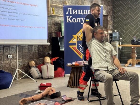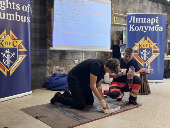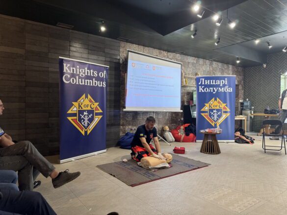 Цього ж дня було проведено тренінг з першої домедичної допомоги для членів Лицарів Колумба з рад міст Тернопіль, Заліщики, Броди та Бережани у молодіжному просторі по вулиці Йосифа Сліпого 5, міста Тернополя. Під час навчання учасники ознайомилися з базовими алгоритмами дій у надзвичайних ситуаціях, що становлять загрозу життю та здоров’ю, а також здобули практичні навички надання першої допомоги. Після завершення курсу всі учасники успішно пройшли підсумкове тестування та отримали акредитовані сертифікати.