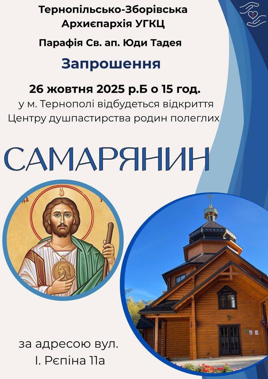 26 жовтня 2025 року у місті Тернополі відкрито ще один Центр душпастирської опіки родин полеглих воїнів “Самарянин”, який діятиме при парафії святого апостола Юди Тадея (вул. Репіна, 11). Освячення Центру звершив архиєпископ і митрополит Тернопільсько-Зборівський Теодор Мартинюк за участю архиєпископа-емерита Василія Семенюка та єпископа-помічника Володимира Фірмана.