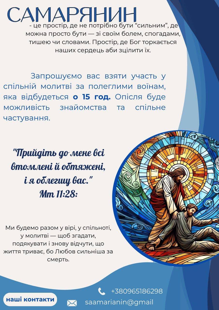 “У притчі про Доброго Самарянина Христос показав серце справжнього милосердя – того, що не минає стражденного, не відвертає погляд від болю, але зупиняється, торкається ран і платить власною любов’ю. Так і Церква сьогодні покликана стати тим “Самарянином” для родин, які втратили своїх найдорожчих у війні. Адже в їхньому болі Христос знову приходить до нас. Через служіння любові ми торкаємось Його ран і стаємо співучасниками Божого милосердя”.