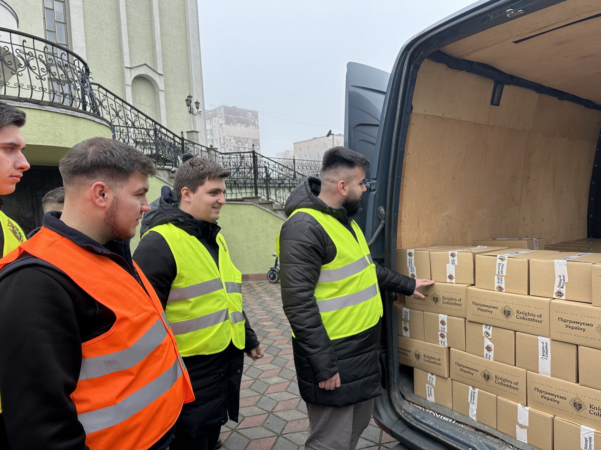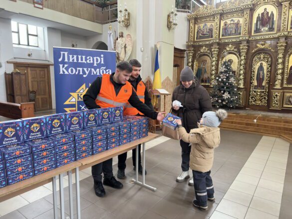 Перша благодійна акція відбулася у храмі святого Архистратига Михаїла на вулиці 15 Квітня. Тут благодійна організація “Лицарі Колумба” спільно з Тернопільсько-Зборівською архиєпархією УГКЦ та за підтримки Тернопільської міської ради надала гуманітарну допомогу мешканцям, які постраждали внаслідок ракетного обстрілу 19 листопада. Допомогу отримали 100 дітей та їхні опікуни: їм передали солодощі, продуктові набори та нові зимові куртки.
