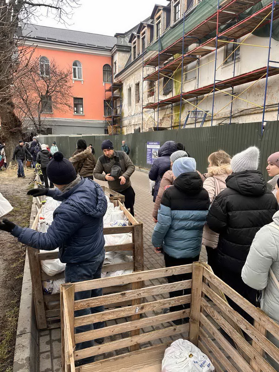 Того ж дня біля Архикатедрального собору в Тернополі волонтери гуманітарного штабу Тернопільсько-Зборівської архиєпархії роздали 2200 продуктових наборів внутрішньо переміщеним особам та потребуючим тернополянам. До складу наборів увійшли крупи, макаронні вироби, олія, м’ясні консерви, солодощі та іграшки для дітей, а також засоби гігієни. Благодійний захід відбувся за підтримки Релігійного товариства українців-католиків Італії “Свята Софія”, яке очолює о. Марко Семеген, та німецької благодійної організації “Коло помічників для Тернопільсько-Зборівської архиєпархії”. Координували о. Петро Порохонько, о. Роман Дутчак та о. Роман Демуш.