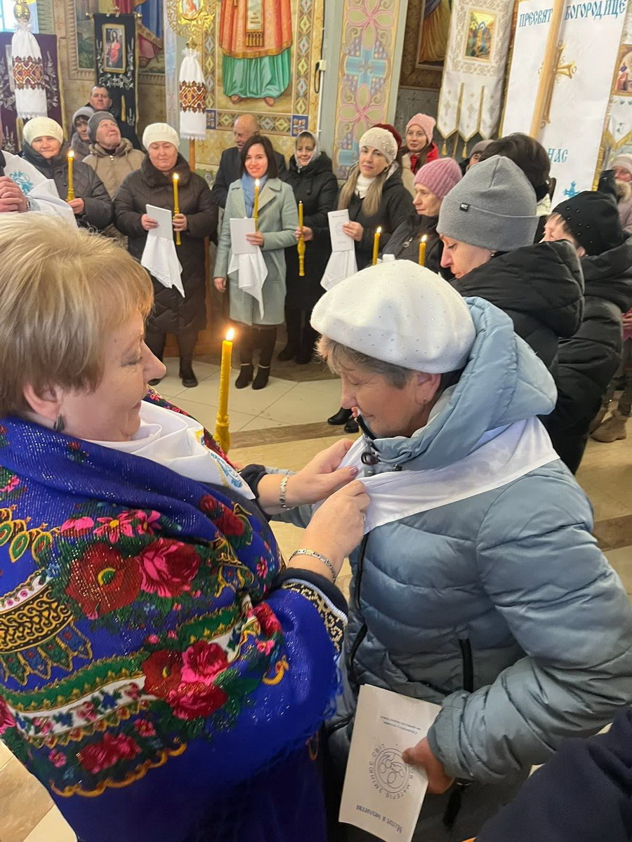У Божественній Літургії взяла участь пані Ольга Білик, координаторка спільноти “Матері в молитві” Тернопільсько-Зборівської архиєпархії. Вона з материнською теплотою вручила кожній учасниці хустку – символ належності до спільноти, та благословила матерів на спільний молитовний шлях.