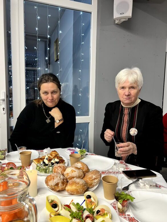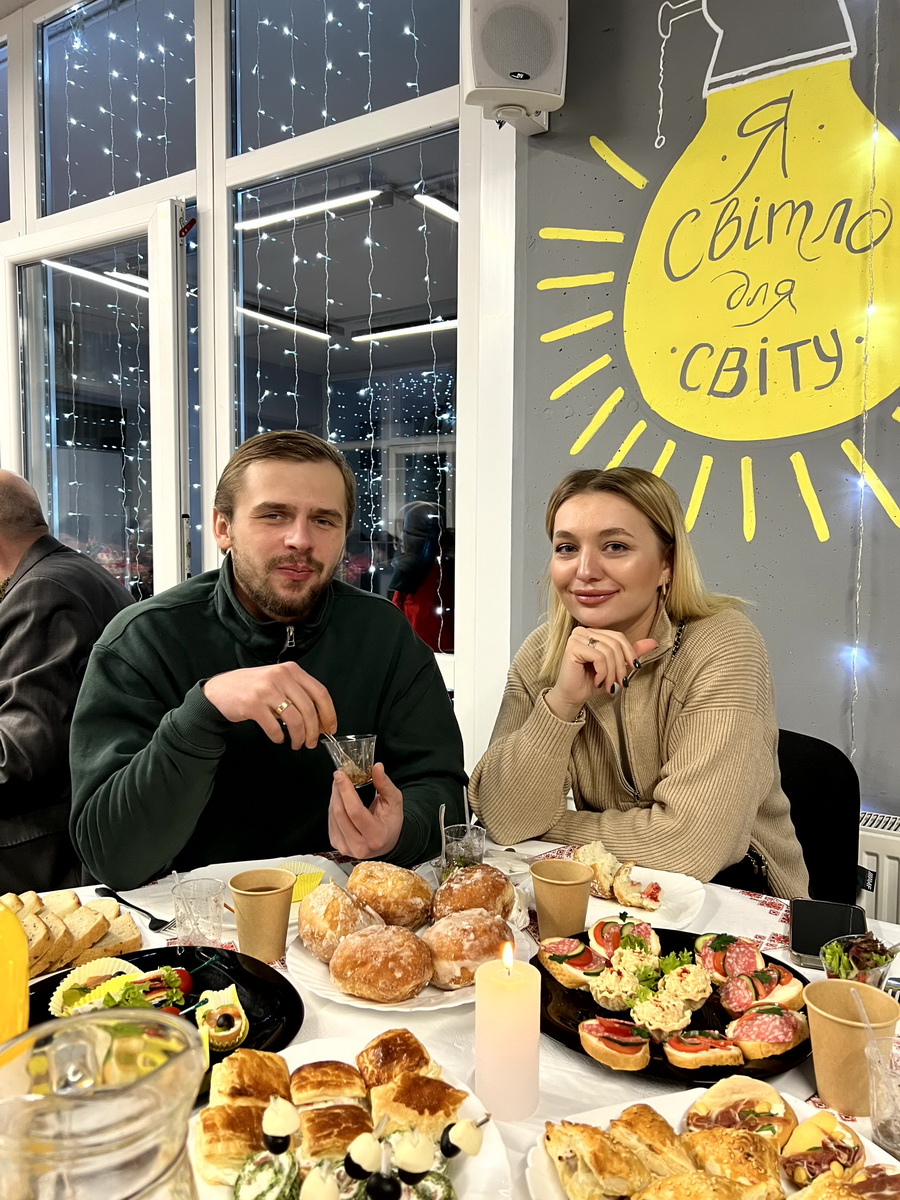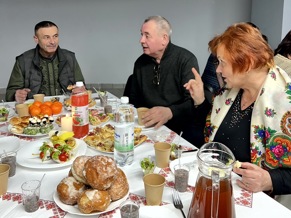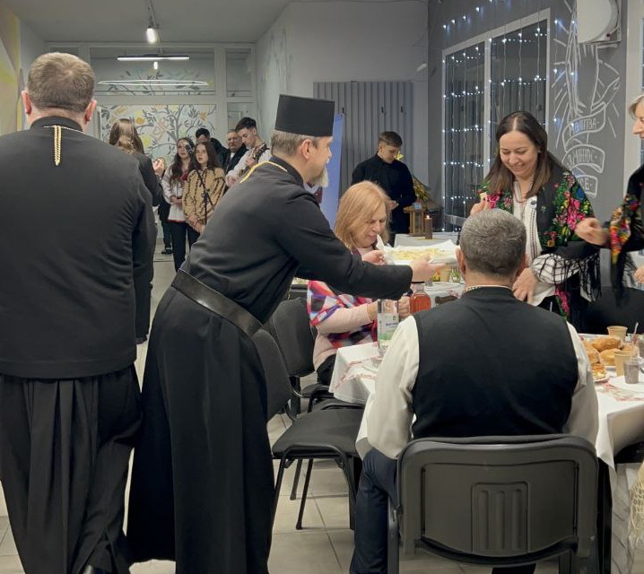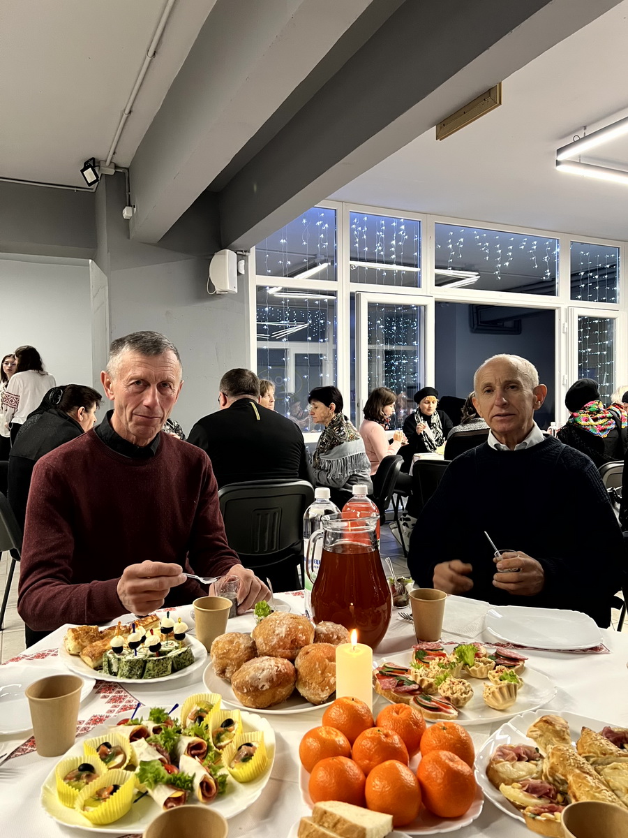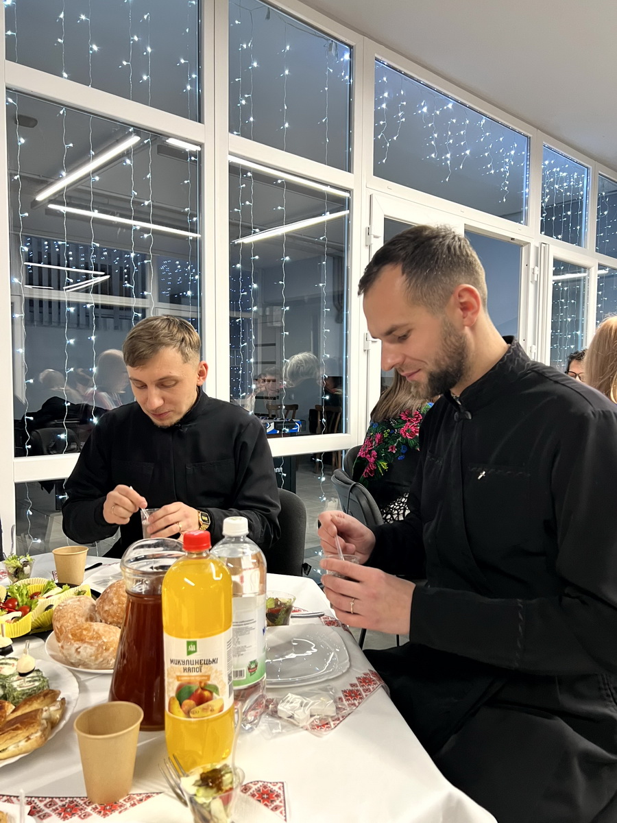 Після Літургії відбулася спільна різдвяна трапеза. Вона розпочалася із запалення вифлеємського вогню – символу миру та Божої присутності, а також ділення різдвяної просфори як знаку єдності та благословення. У різдвяній зустрічі взяли участь близько 60 родин полеглих захисників.