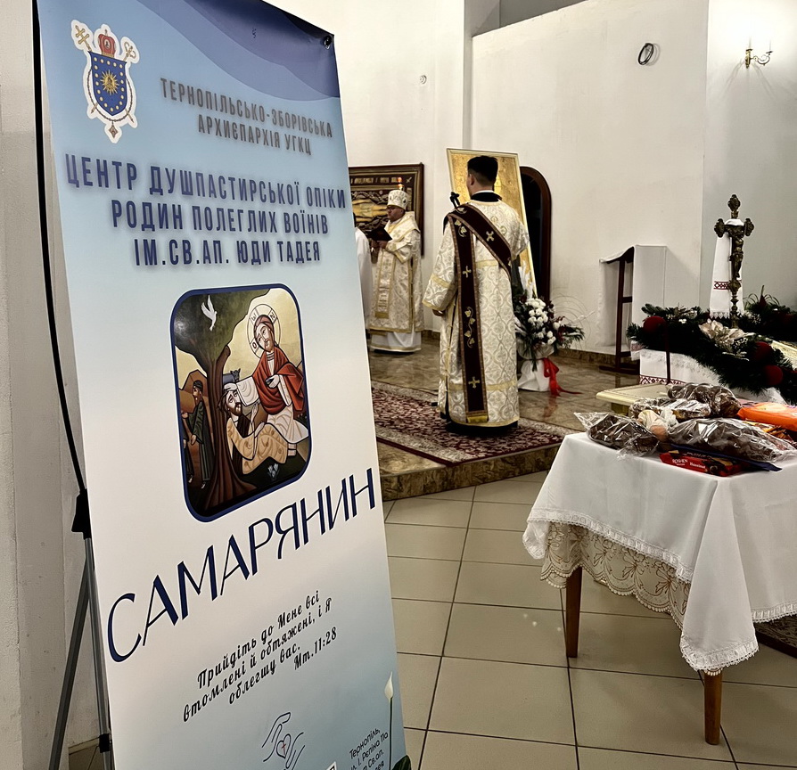 Центр душпастирської опіки “Самарянин” відкрито при парафії святого Апостола Юди-Тадея УГКЦ у Тернополі. Його місія – духовно підтримувати родини загиблих захисників України, проводячи спільні молитви, зустрічі груп взаємопідтримки, прощі, реколекції та творчі і культурні заходи. Центр також має стати місцем, де сім’ї, які пережили втрату, можуть знайти розуміння, опору та тепло у спільноті.