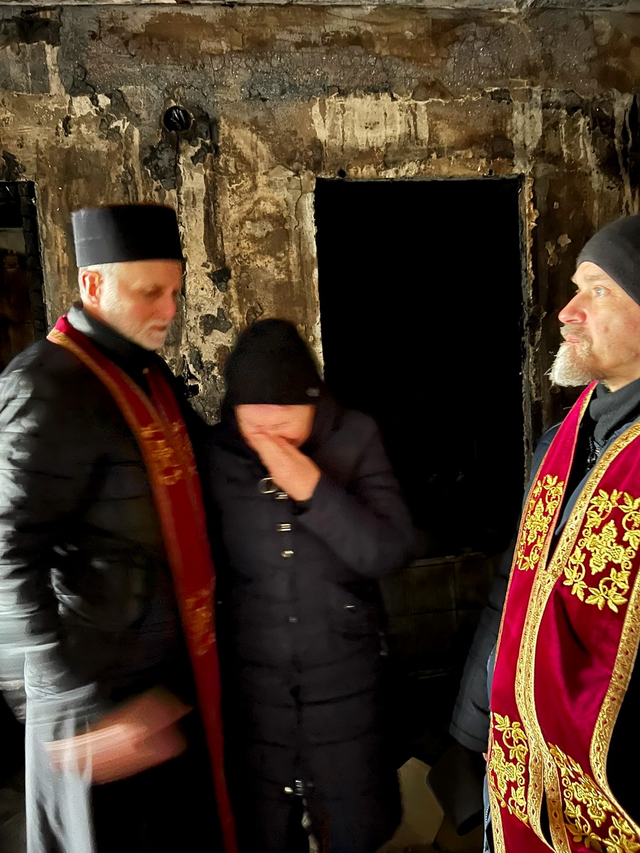 “Похмурий, холодний зимовий ранок… Ми серед житлових будинків, де загинули десятки людей. Бог з нами. Він близький до нашого болю. Ці невинні життя живуть у вічній пам’яті Його”.