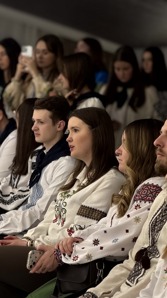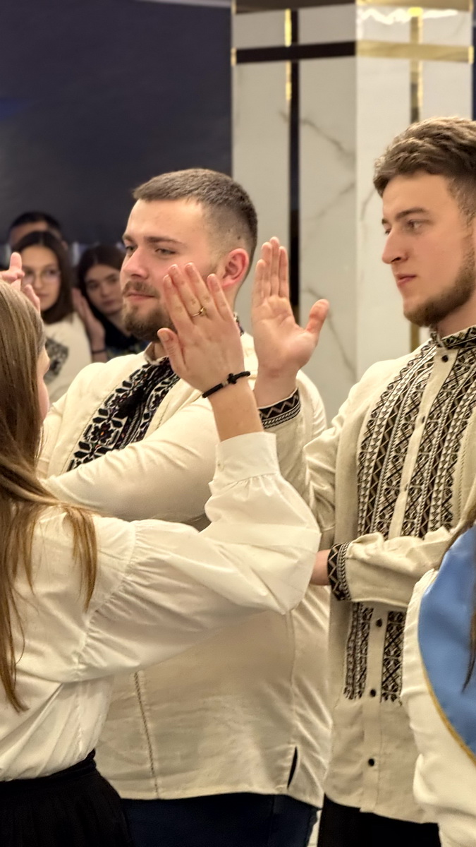 Упродовж свята гучно лунала різдвяна коляда та благовість про народження Спасителя, яку молодь доносила через спільну молитву, спів і свідчення віри в обставинах війни. Повний зал учасників у святкових вишиванках створював родинну атмосферу єдності, засвідчуючи живу присутність молодої Церкви та глибоке переживання Різдва Христового.