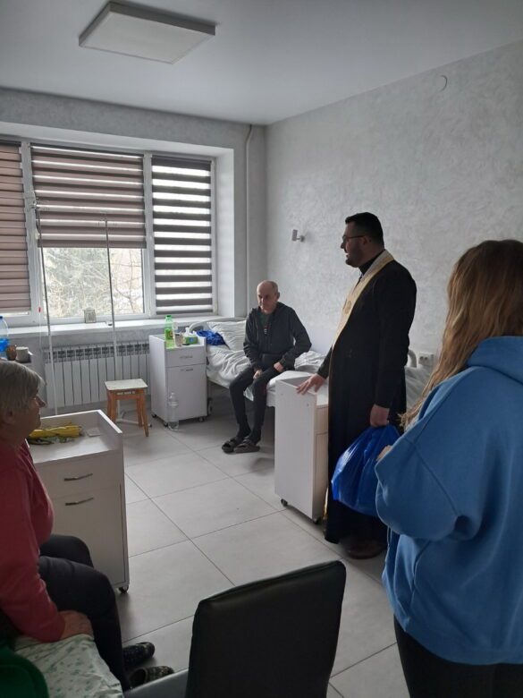 Під час відвідин волонтери спілкувалися з пацієнтами, молилися разом із ними та вручали кожному свіжоспечену булочку й образок.