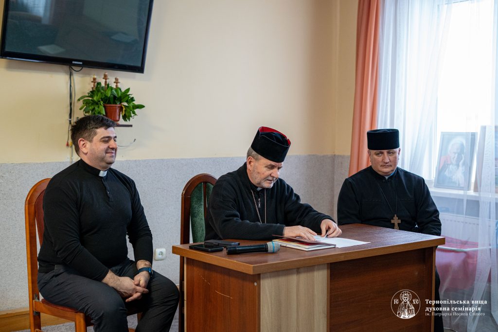 Перша конференція була присвячена зустрічі владики Дмитра Григорака з семінаристами Бучацької єпархії. Разом із владикою семінарію відвідали о. ліц. Дмитро Ненчин, канцлер єпархії, та о. ліц. Антон Крушельницький, економ і секретар владики. У форматі відкритого спілкування семінаристи мали можливість поставити запитання, що стосувалися духовного життя, навчання та священничого служіння. Владика Дмитро наголосив на важливості постійної праці над собою, глибокого духовного життя та безперервного навчання, зокрема заохотив до подальших студій після завершення семінарії. Про це повідомляє сайт Тернопільської семінарії.