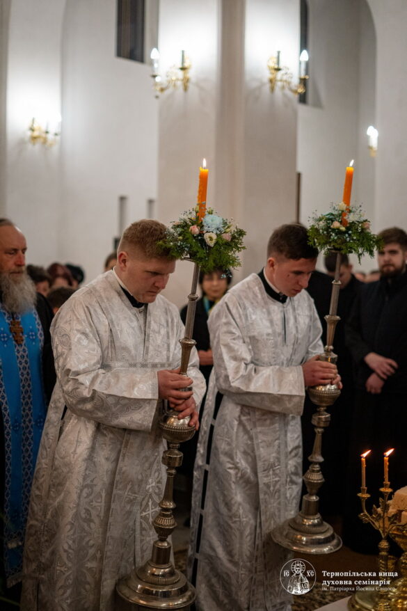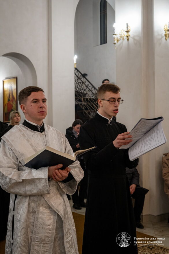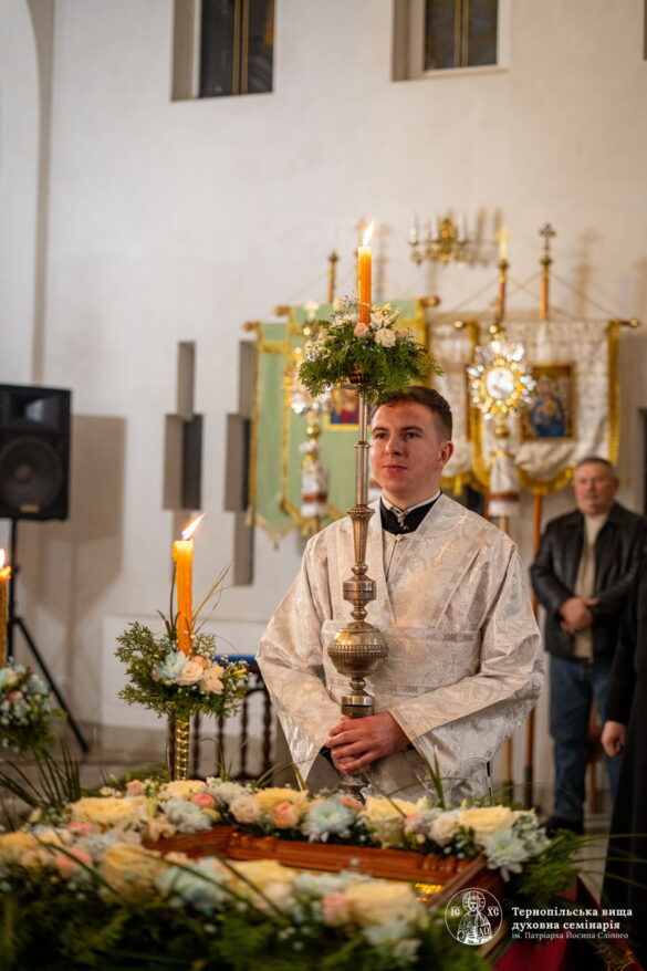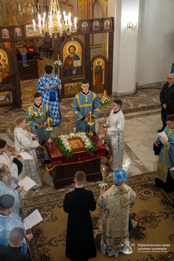Під час богослужіння миряни разом із духовенством і семінарійною спільнотою прославляли Пресвяту Богородицю, підносили щирі молитви за справедливий мир і швидку перемогу для нашої багатостраждальної України. А також мали моживість приступити до святої тайни Покаяння у якій їм служили духівники семінарії.