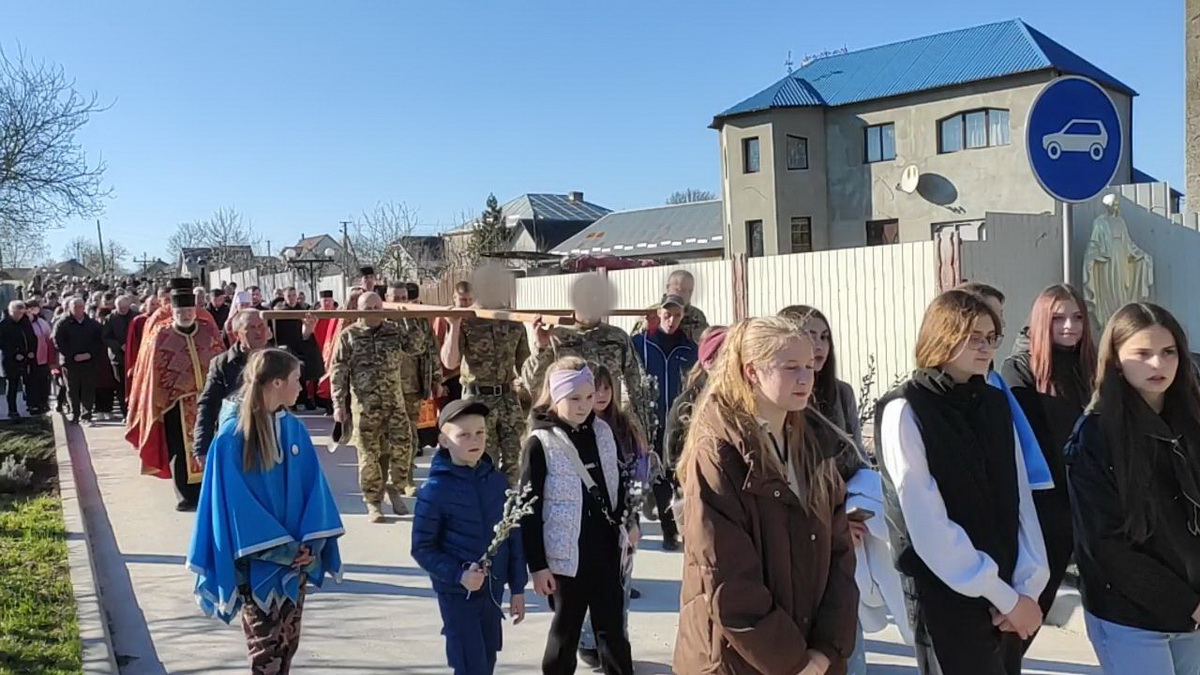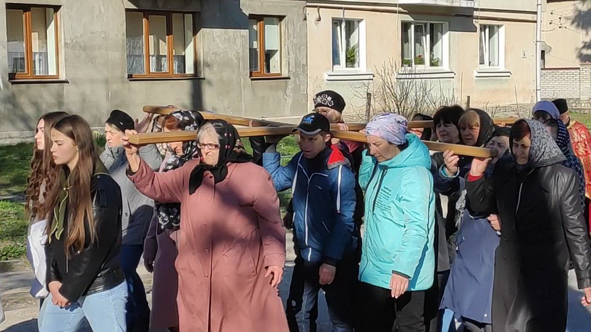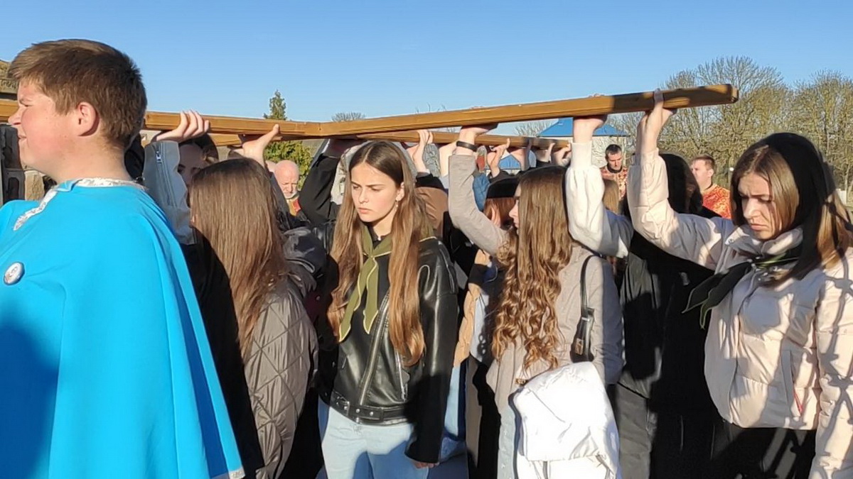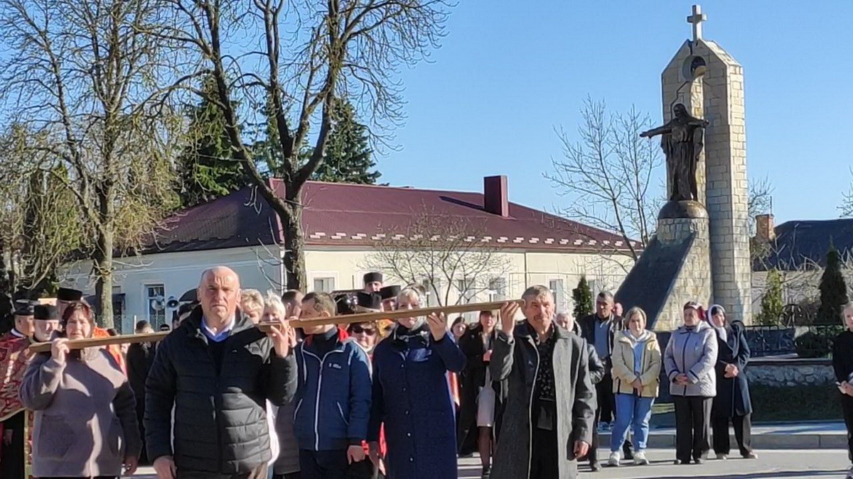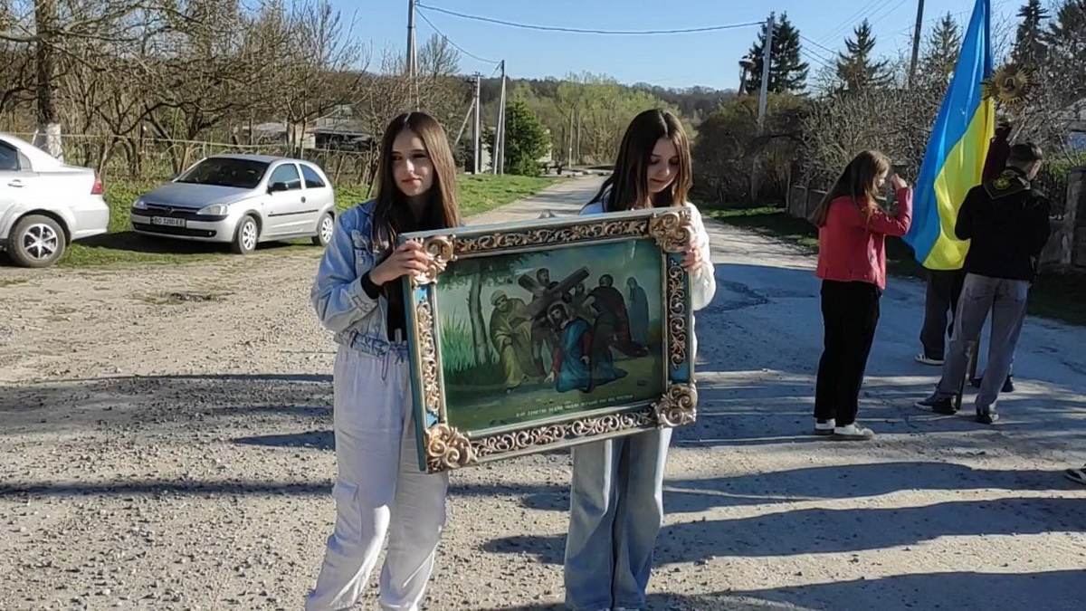 Під час однієї зі стацій дерев’яний хрест несли воїни-захисники України – уродженці Козлова, учасники бойових дій.