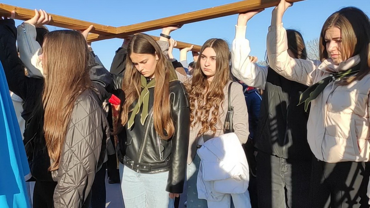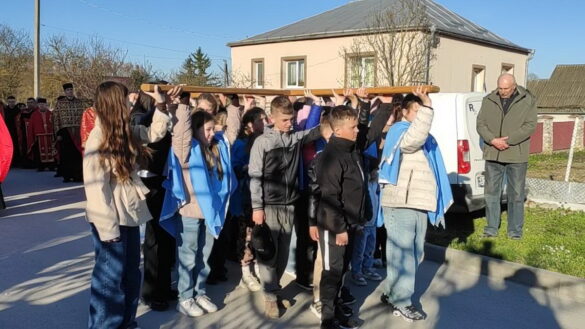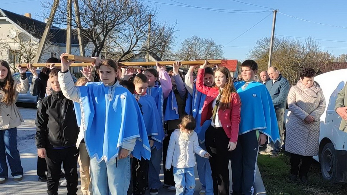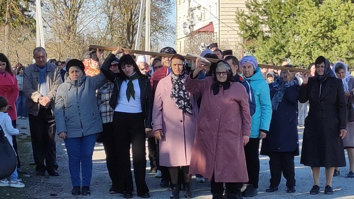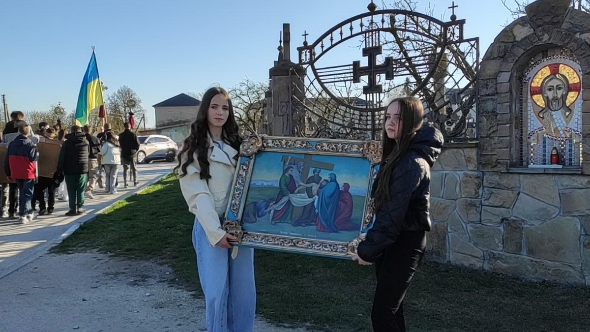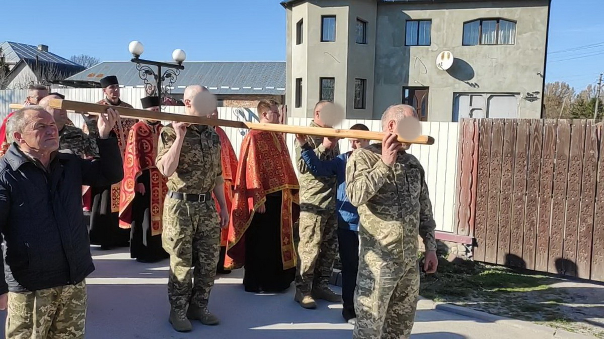 Під час однієї зі стацій дерев’яний хрест несли воїни-захисники України – уродженці Козлова, учасники бойових дій.